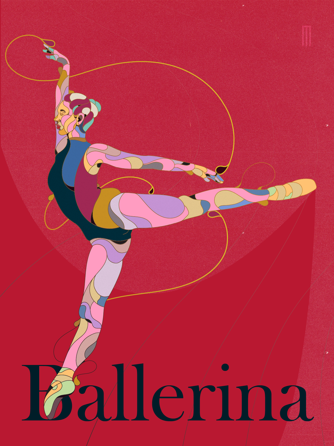Poster illustration of a ballerina using curves and movement inspired by their elegance.